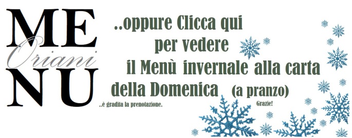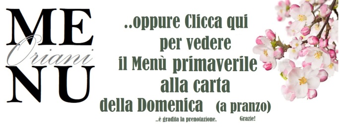 Il Ristorante Oriani Vi aspetta a pranzo dal lunedì al venerdì con un Menù a prezzo fisso, Menù che cambia di giorno in giorno con la possibilità di scegliere tra numerose alternative (vedi "Menù del giorno").